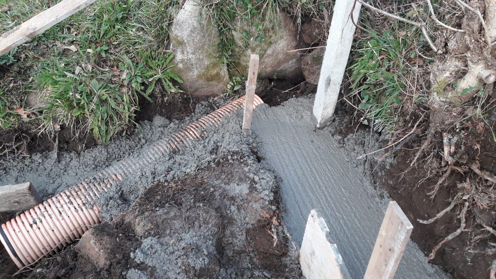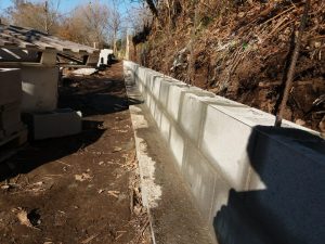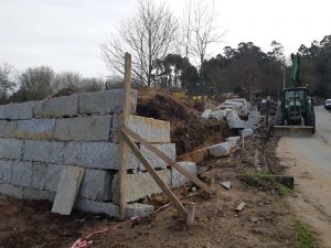 Para finalizar los trabajos se llevó a cabo el grueso de la obra, con la construcción del muro de contención de mampostería granítica.